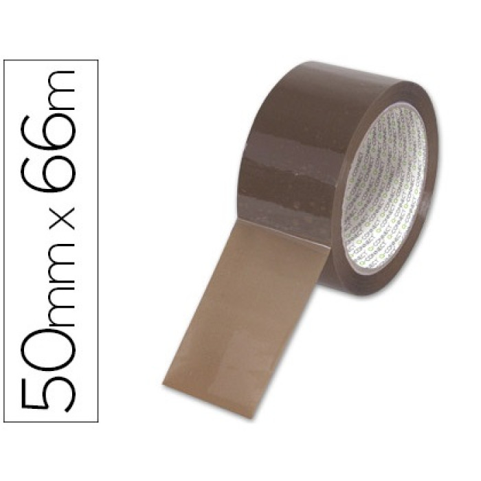 Cinta adhesiva q-connect polipropileno havana 66 mt x 50 mm -para embalaje bajo ruido. Cinta especial para embalaje. Alta adherencia. Más resistente, menos ruidosa. Medidas: 66 m x 50 mm. 50 micras.