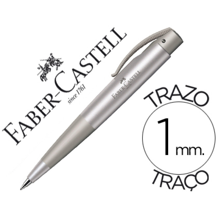Boligrafo FABER CONIC azul, caucho, retractil ** Tinta indeleble, Color plata